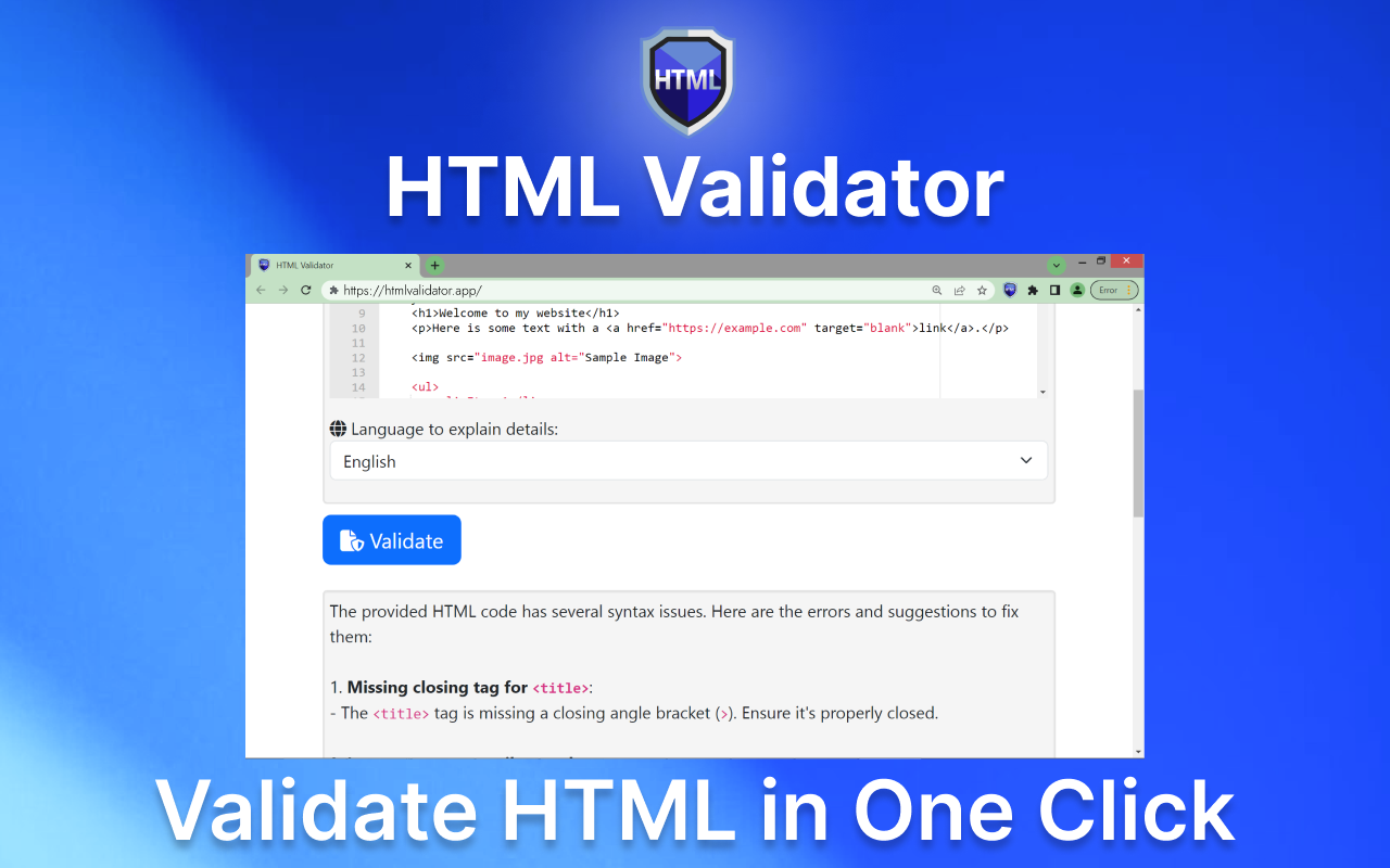 No more struggling with browser quirks or vague errors. HTML Validator makes coding enjoyable while keeping your pages fully optimized.